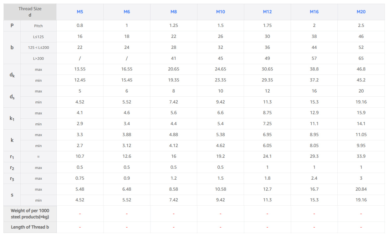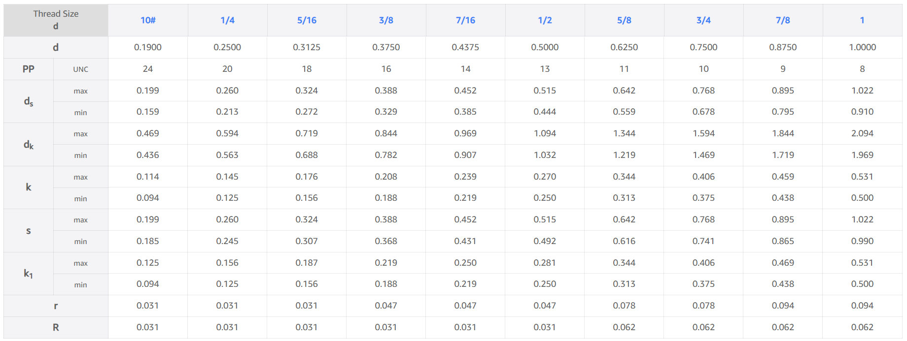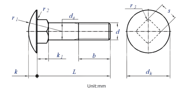 Carriage Bolt Size Chart – ASME B18.5 Inch Dimensions Carriage Bolt Size Chart – DIN 603 / ISO 8677 Metric Dimensions