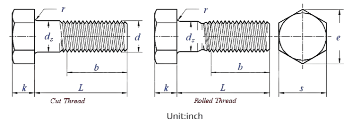 Hex Bolt Size Chart – ASME B18.2.1 Inch Dimensions