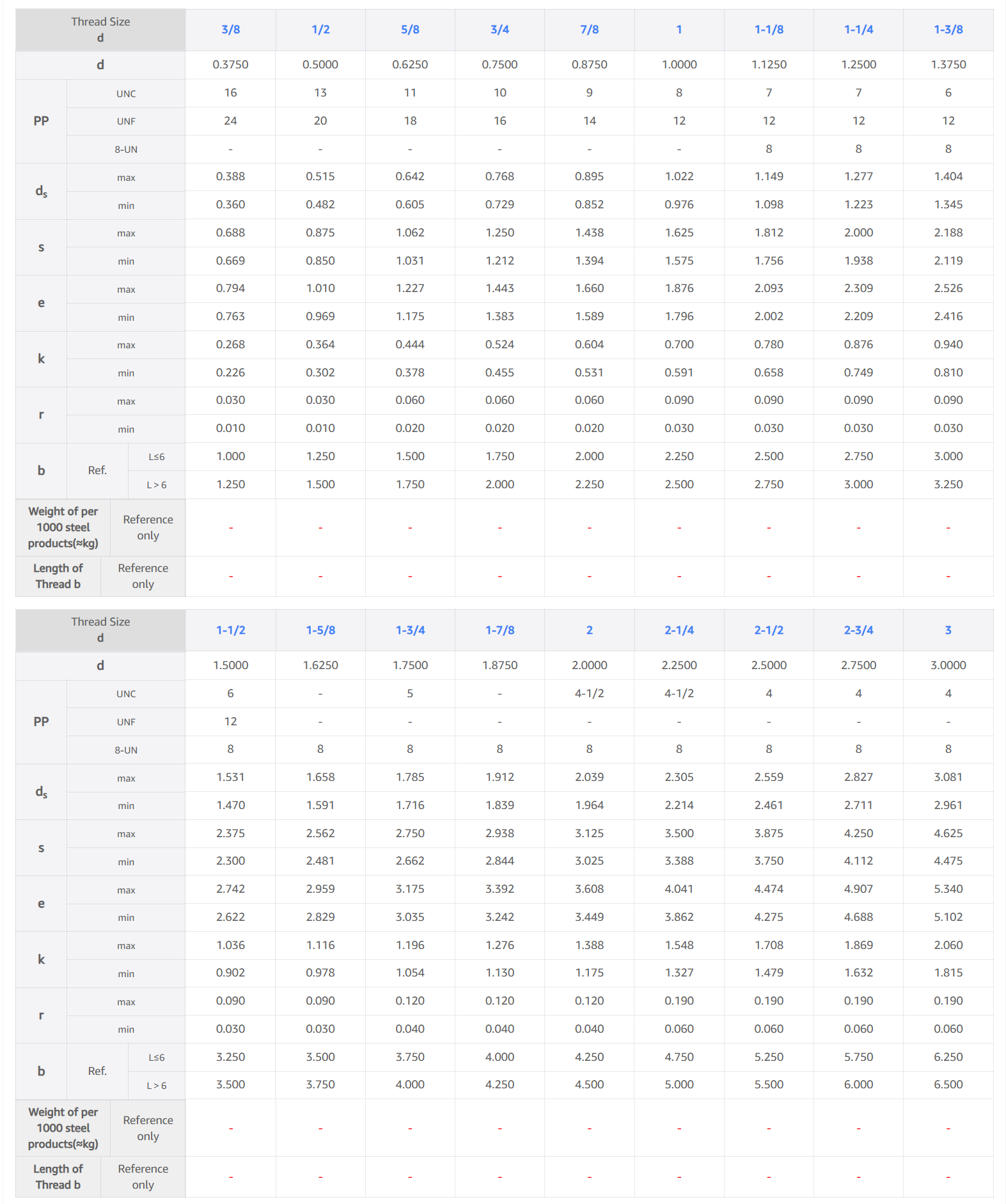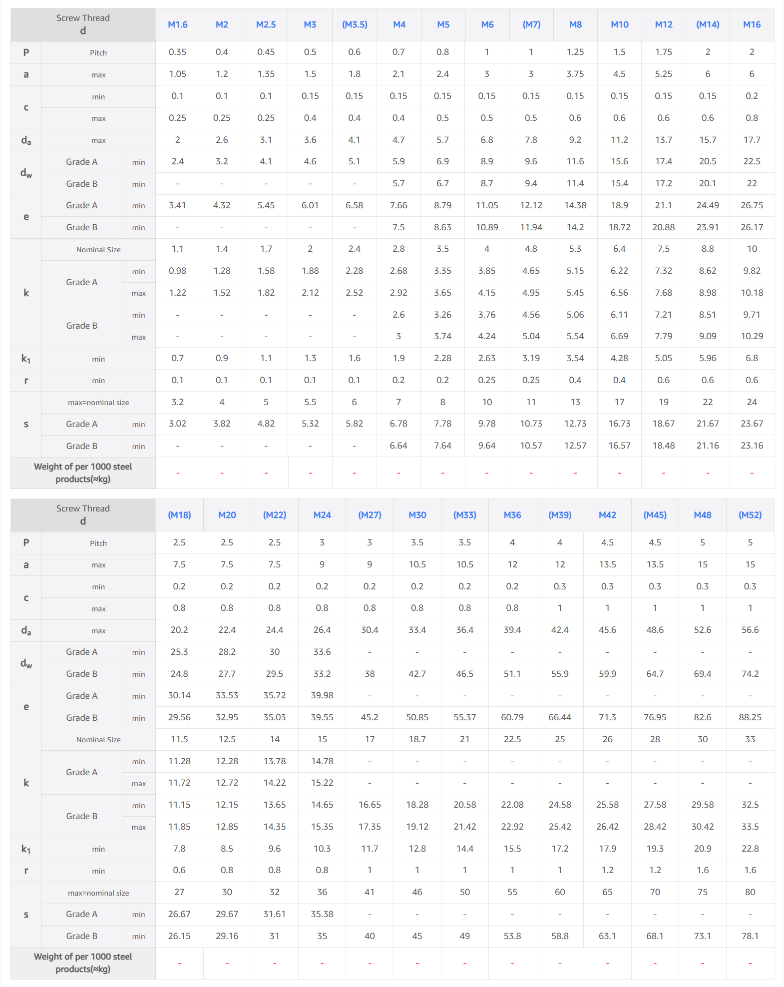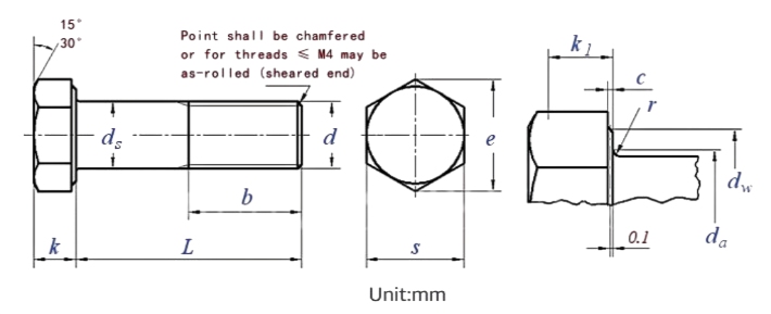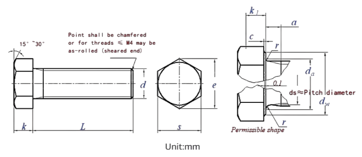 Hexagon Bolt Size Chart – ISO 4017 / DIN 933 Metric Dimensions