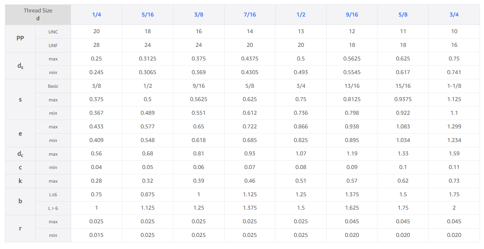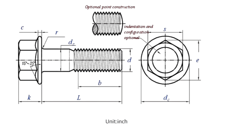 Hex Flange Screw Size Chart – ASME B18.2.1 Inch Dimensions