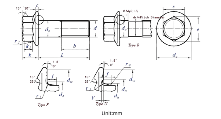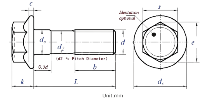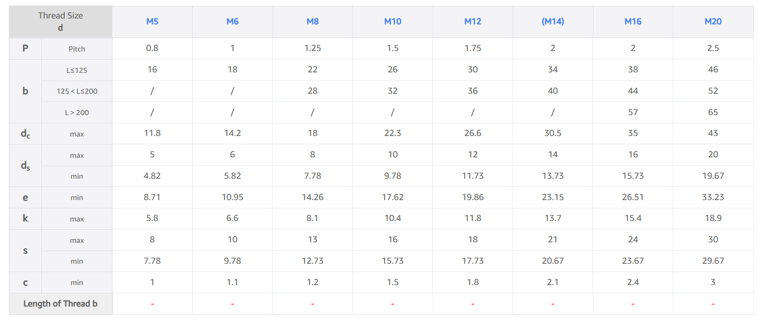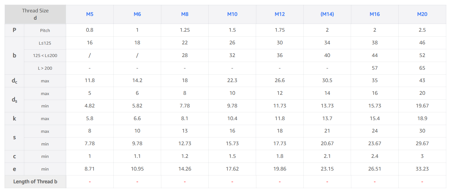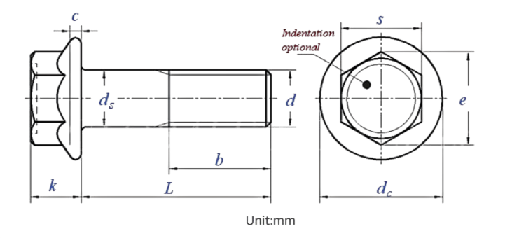 Hexagon Flange Bolt Size Chart – ISO 4162 Metric Dimensions (Small Series)