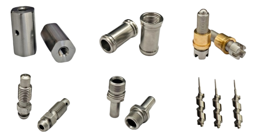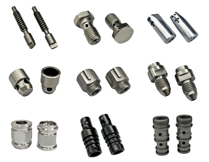 Our CNC Turning Division has been manufacturing micro and small precision turned parts (0.5mm – 28mm in diameter) as well as non-standard small fasteners (screws, nuts, pins, etc.) for over a decade. Our facility is equipped with Taiwan-made precision automatic lathes, CNC automatic lathes, Swiss-type lathes, and turn-mill compound machines, serving industries such as smoking accessories, eyewear, electrical appliances, automotive parts, fishing tackle, lighting, and pneumatic components. We machine precision parts from copper, iron, aluminum, titanium, stainless steel, and other materials, all according to customer drawings or samples.