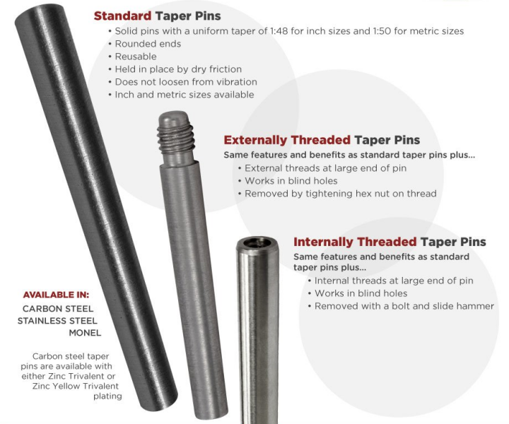 Internal Thread Taper Pin Threaded hole at large end For blind hole applications; threaded end facilitates removal