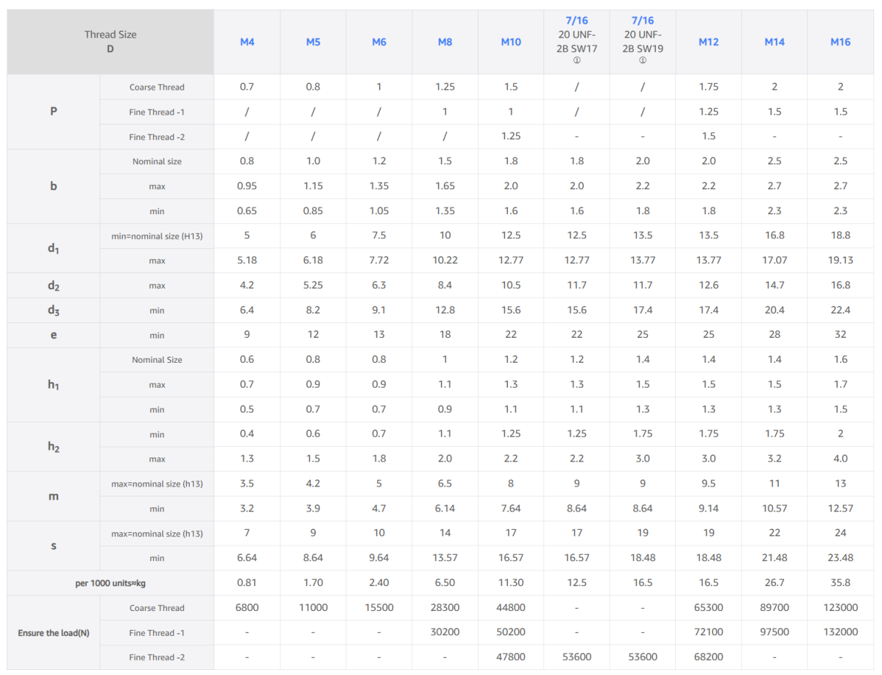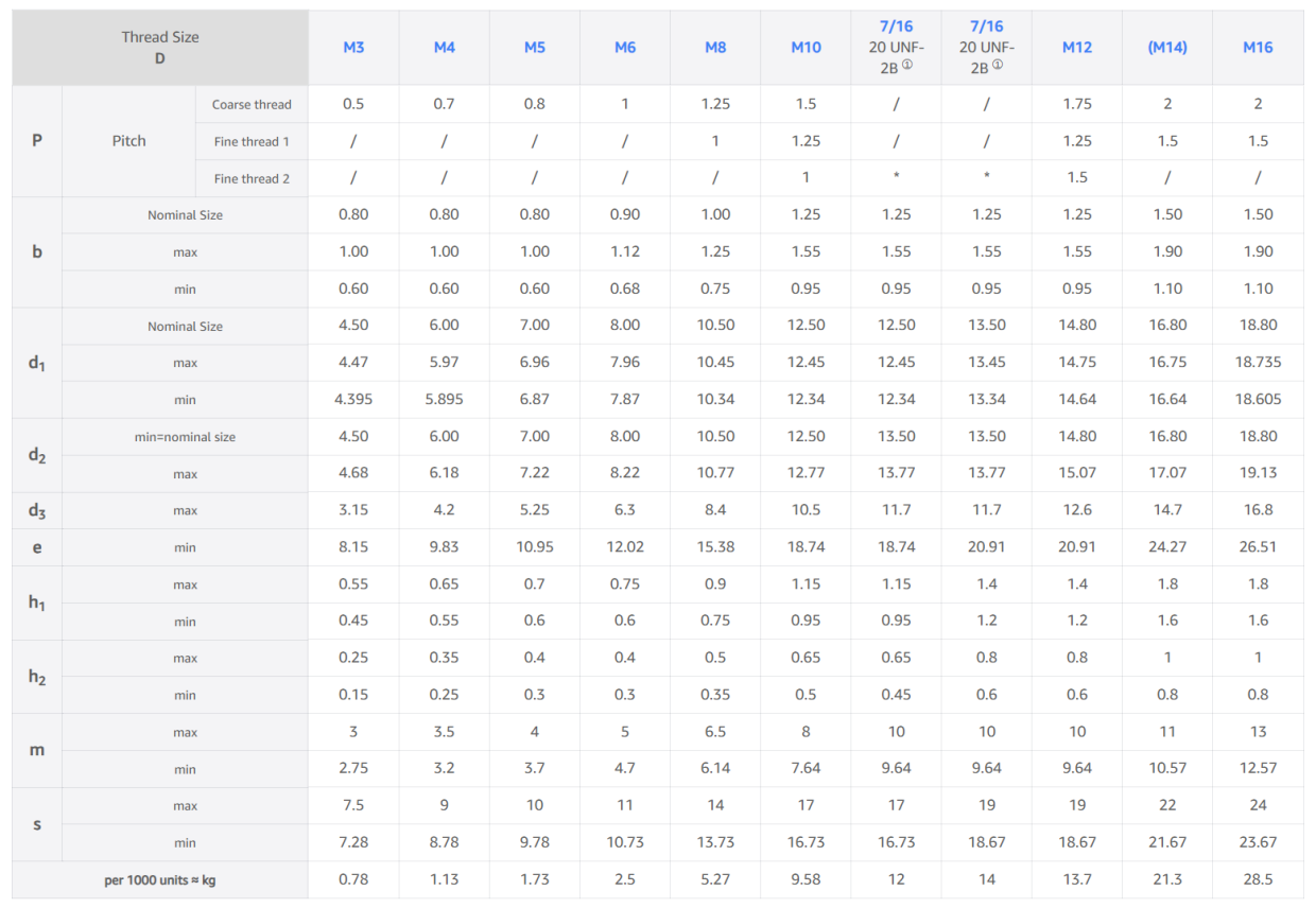 Hexagon Weld Nut Size Chart – DIN 929  Metric Dimensions