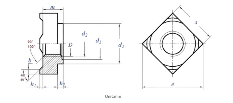 Square Weld Nut Size Chart – DIN 928  Metric Dimensions