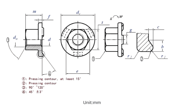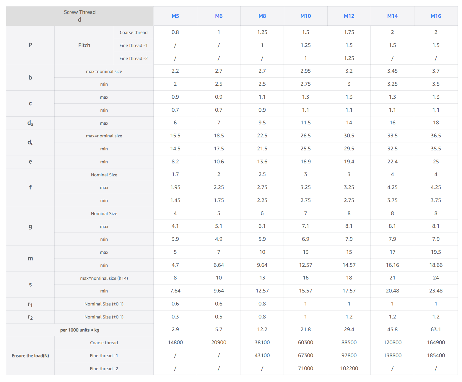 Hexagon Weld Nut With Flange Size Chart – ISO 21670  Metric Dimensions